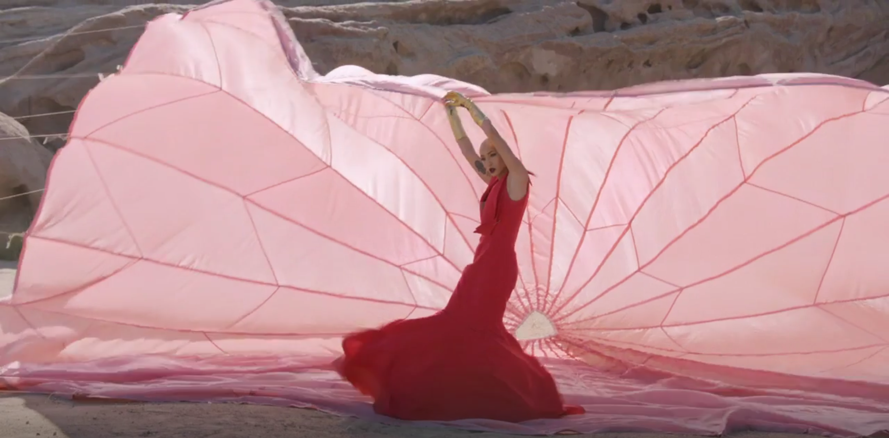 Brendi K says that this shoot is all about feeling and being powerful. "The wind trying to knock you away and the parachute trying to pull you, but you're still standing strong." Which model will totally fly high and nail their 'chute, and which will fall flat? Watch the clip above to find out.