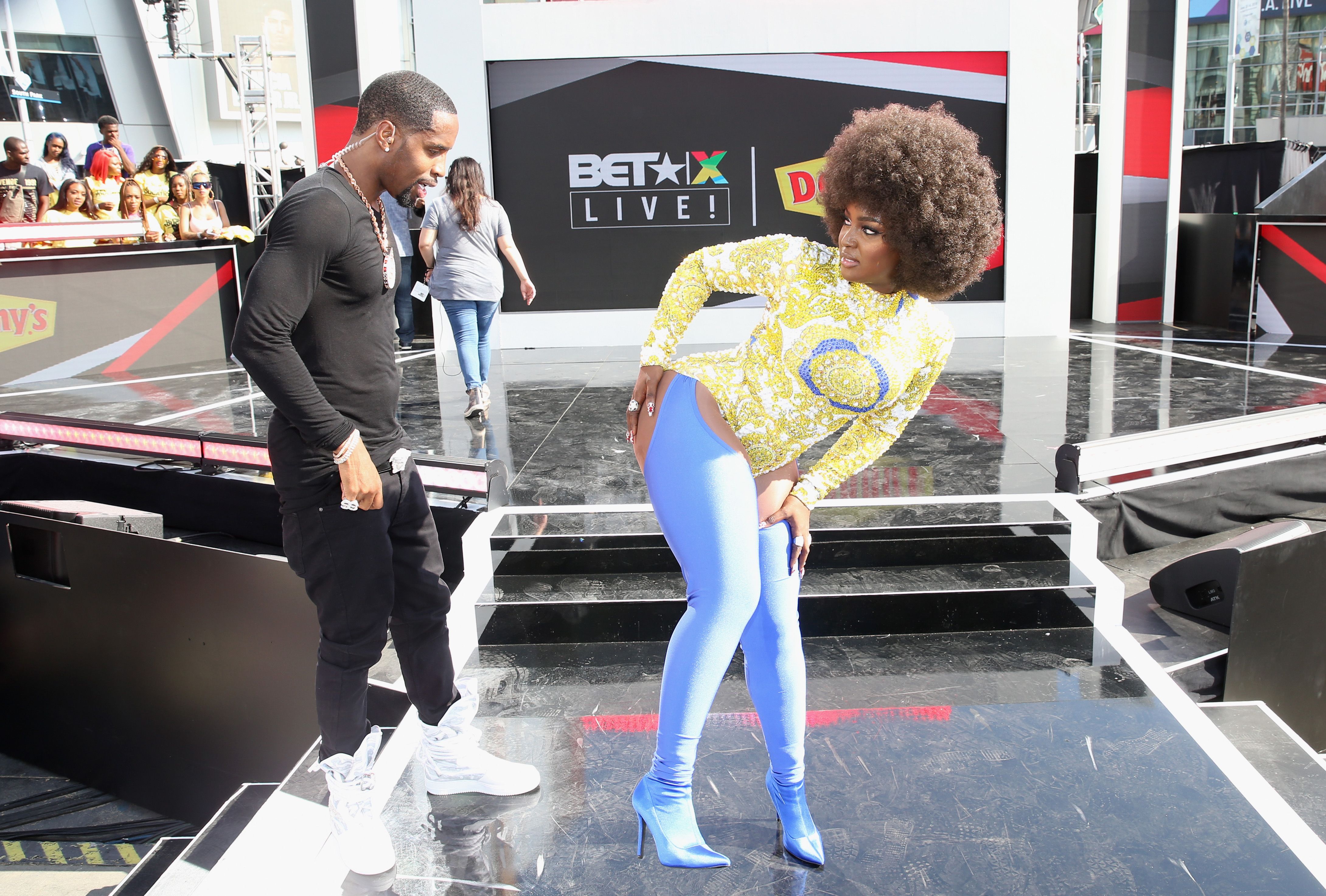 LOS ANGELES, CA - JUNE 21: Safaree Samuels and Amara La Negra attend BETX Live!, presented by Denny's, during the 2018 BET Experience at Microsoft Square at L.A. Live on June 21, 2018 in Los Angeles, California. (Photo by Bennett Raglin/Getty Images for BET)